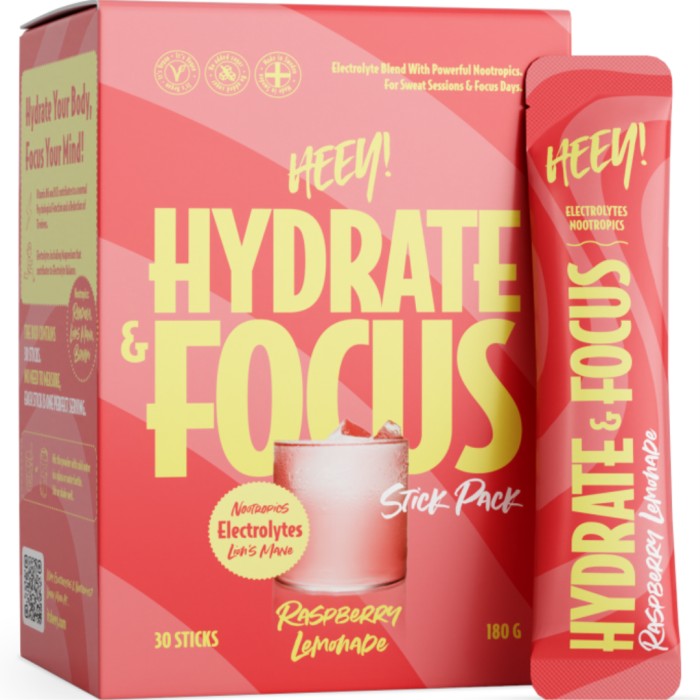 Heey! Hydrate & Focus Electrolytes, Raspberry Lemonade 30 x 6 g