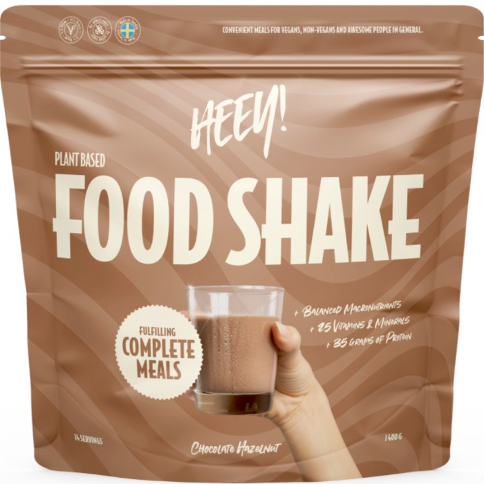 Its Heey Food Shake Chocolate Hazelnut är ett pulver för en näringsrik vegansk måltidsersättning. En laktos- och glutenfri shake framtagen för att passa dig med en aktiv livsstil.