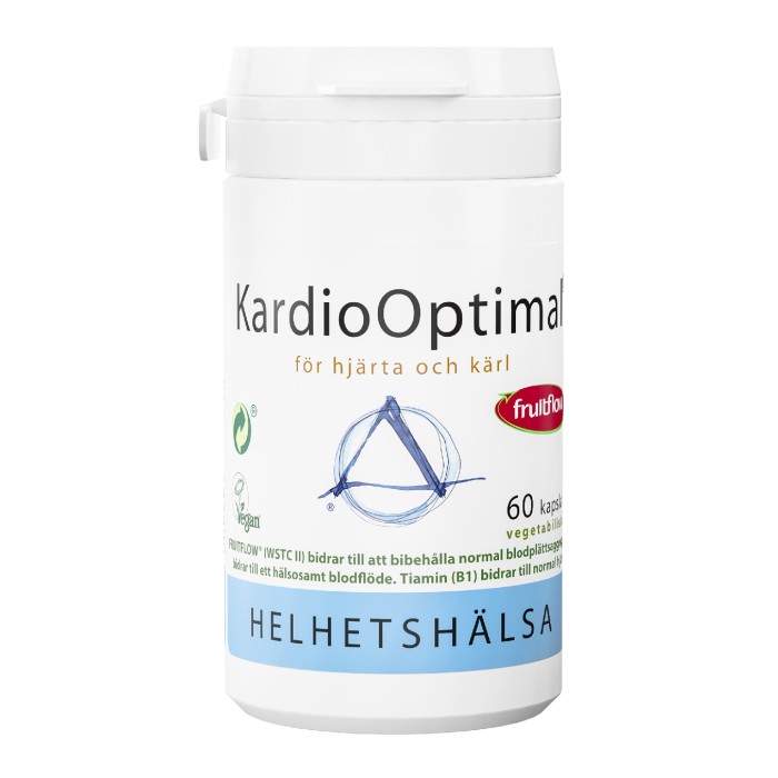 KardioOptimal® är ett växtbaserat vitamin- och mineraltillskott med utvalda ingredienser för hjärta och kärl. KardioOptimal innehåller det patenterade tomatextraktet FruitFlow® WSTC II som är ett patentskyddat extrakt från tomater. (WSTC står för Water Soluble Tomato Concentrate.)