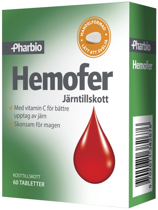 Hemofer är ett järntillskott som används vid järnbrist och förebyggande av järnbrist. Det som gör Hemofer unikt i jämförelse med andra järnpreparat är innehållet av hemjärn. Kroppen tar lättare upp hemjärn än icke-hemjärn. Hemofer innehåller även vitamin C för bättre upptag av järn.