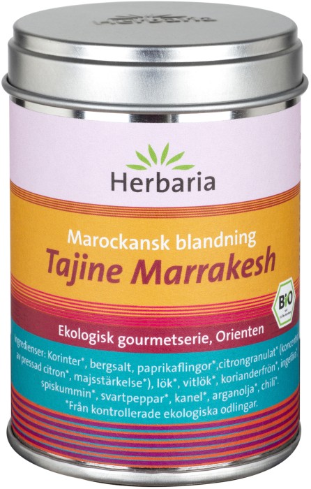 Herbaria Tajine Marrakesh är en ekologisk kryddblandning perfekt till marockanska Tajinerätter i traditionell lergryta, och till andra gryträtter.