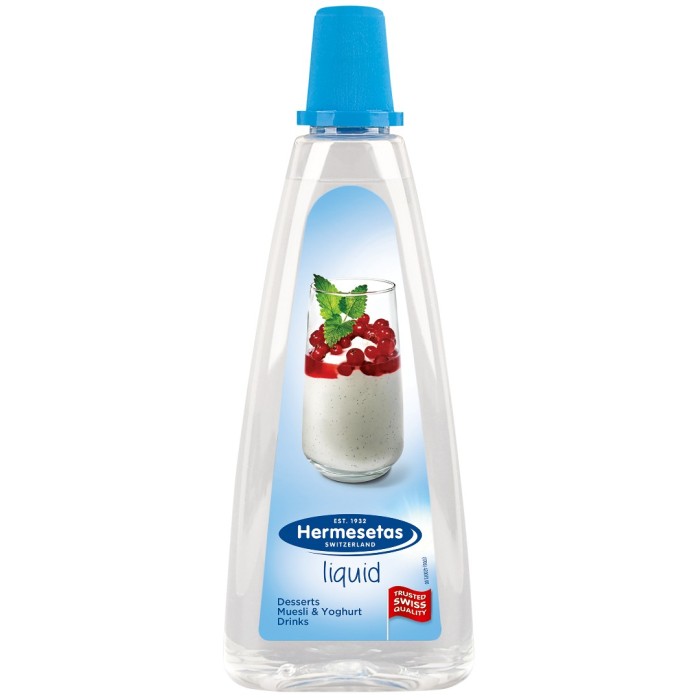 Hermesetas Liquid är ett flytande sötningsmedel som kan användas som sötning i drycker, i sylt eller användas för att söta t ex fil och yoghurt. Hermesetas Liquid är baserad på cyklamat och sackarin och innehåller inga kalorier.