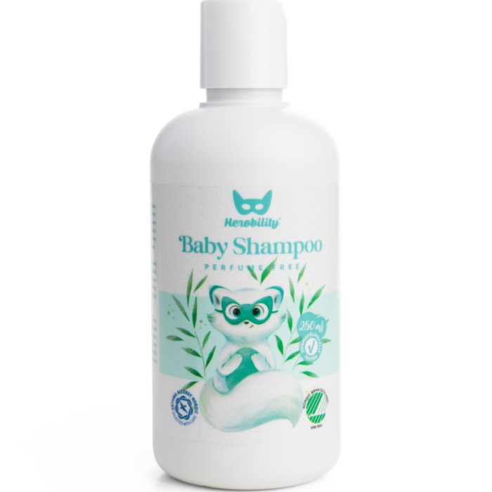 Herobility Baby Schampo är ett schampo för barn som är speciellt framtaget för att vara milt och skonsamt för barnets känsliga hårbotten, och som gör håret rent och mjukt. Använd motsvarande 1 tesked schampo får att få en rengöring som är anpassad för spädbarn och småbarn. Oparfymerat.
