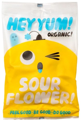 Hey Yum Sour Flower är ett ekologiskt och glutenfritt gelégodis med sötsur smak. De mjuka godisbitarna har smak av körsbär, ananas och apelsin, och är rullade i sötsurt socker. Godiset har formen av olika blommor. Kanske en ny favorit för både stora och små?