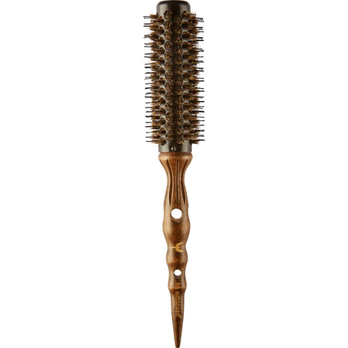 HH Simonsen The Turn Brush är en unik borste gjord av naturliga material för en lyxig fön-upplevelse och framtagen för att ge en exceptionell finish. Borsten har ett träskaft som är svarvat för hand och de naturliga borsten av vildsvin gör håret mjukt och ger det glans.