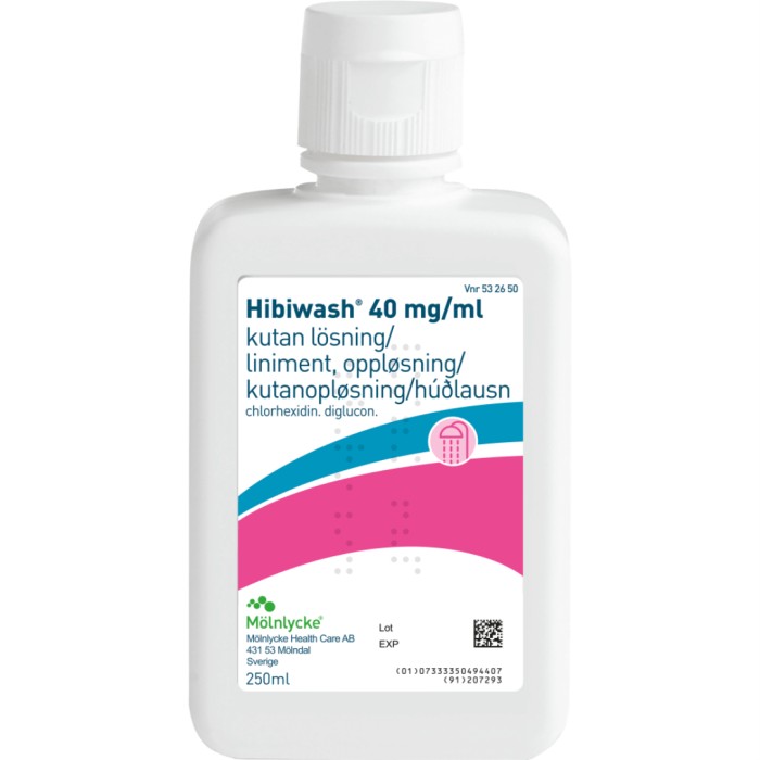 Hibiwash® är ett antimikrobiellt hudrengöringsmedel som används för att tvätta kroppen inför en operation. Hibiwash minskar infektionsrisken och samtidigt är skonsamt mot huden. Denna lättanvända lösning är pålitlig vid operationer. Hibiwash fäster vid huden, vårdar huden och eliminerar bakterier både före och efter kirurgiska ingrepp. Hibiwash innehåller även mjukgörande ämnen. Hibiwash används även efter en operation för att hjälpa till att förhindra infektioner.