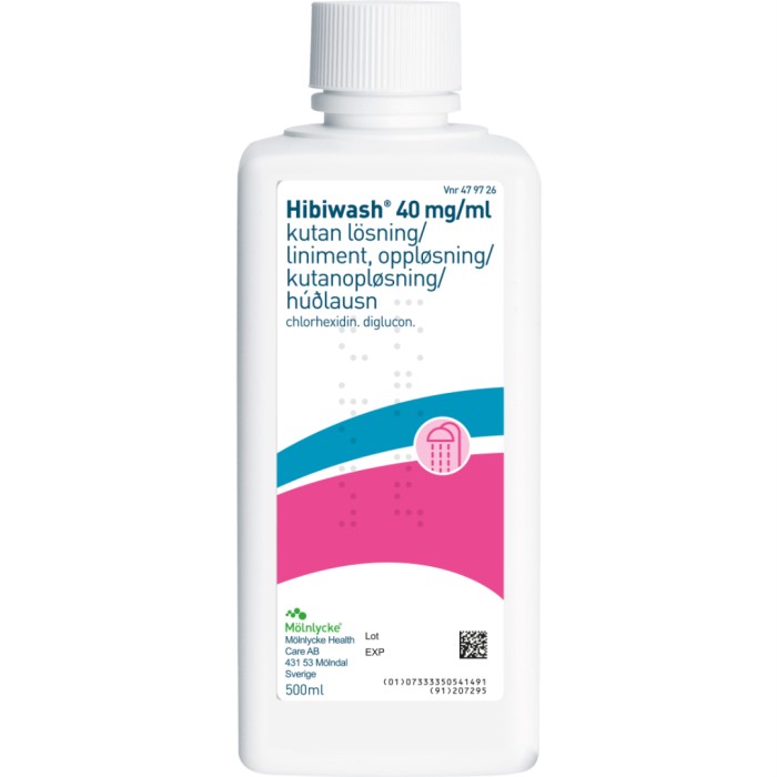 Hibiwash® är ett antimikrobiellt hudrengöringsmedel som används för att tvätta kroppen inför en operation. Hibiwash minskar infektionsrisken och samtidigt är skonsamt mot huden. Denna lättanvända lösning är pålitlig vid operationer. Hibiwash fäster vid huden, vårdar huden och eliminerar bakterier både före och efter kirurgiska ingrepp. Hibiwash innehåller även mjukgörande ämnen. Hibiwash används även efter en operation för att hjälpa till att förhindra infektioner.