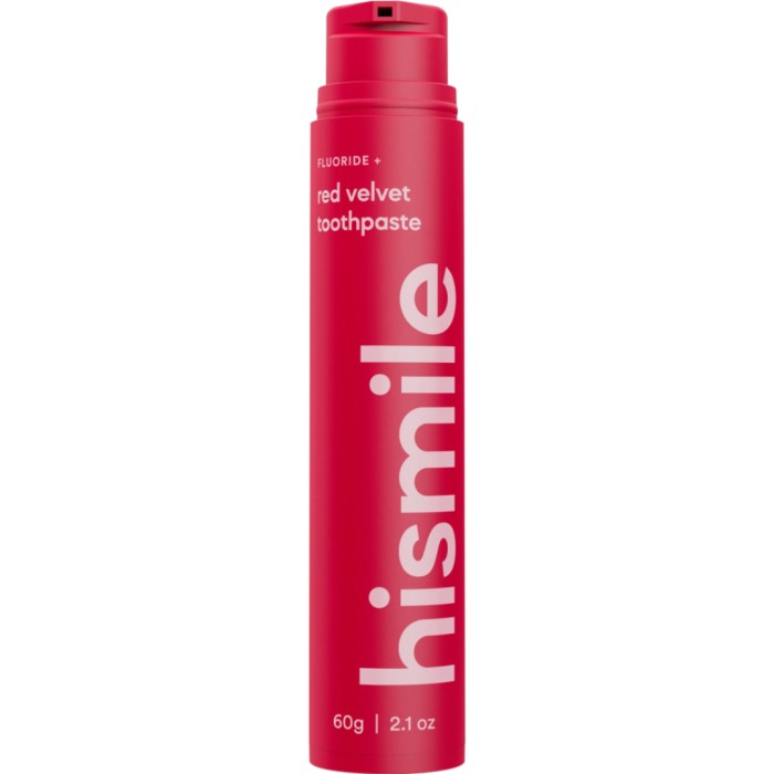 Hismile Flavoured Toothpastes är en serie tandkrämer med olika smaker och färger. Deras Red Velvet Toothpaste kanske är en tandkräm för dig som vill prova en annan smak än den mintsmak de flesta tandkrämer har. Hismile har flera olika smaker som kanske göra tandborstningen lite roligare. I serien finns bland annat smakerna vattenmelon, iste och mangosorbet.