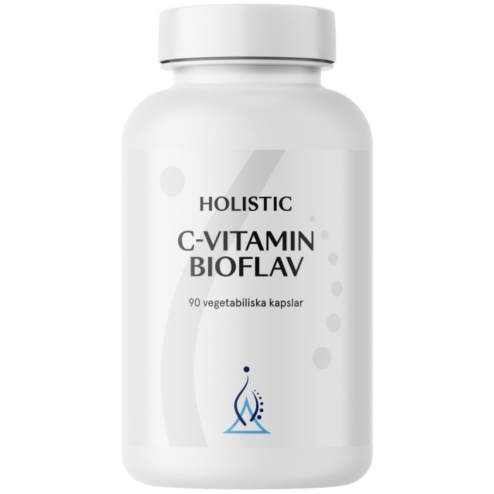 Holistic C-vitamin Bioflav är ett kosttillskott med vitamin C. Vitamin C bidrar till att minska trötthet och utmattning, till att skydda cellerna mot oxidativ stress, till immunsystemets normala funktion och till normal kollagenbildning. Vitamin C ökar även järnupptaget.