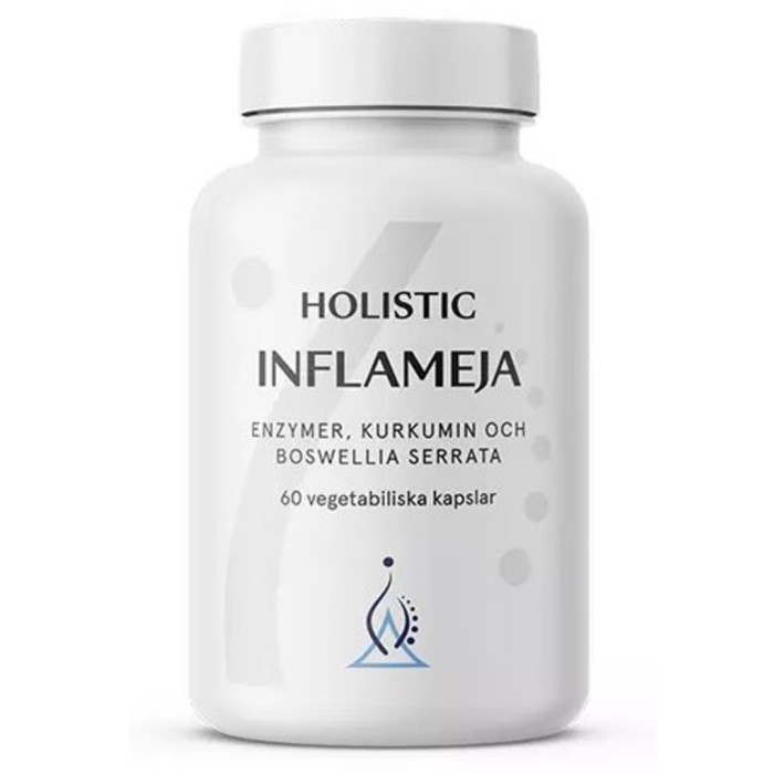 Holstic Inflameja är ett kosttillskott som innehåller enzymer, kurkumin och boswellia serrata.