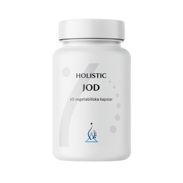 Holistic Jod är ett kosttillskott som innehåller jod. Jod bidrar till normal produktion av sköldkörtelhormoner och till normal sköldkörtelfunktion. Jod bidrar även till nervsystemets normala funktion, normal energiomsättning samt normal kognitiv funktion.