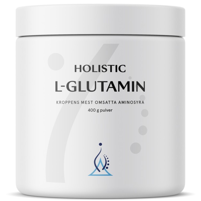 Holistic Glutamin är ett kosttillskott som innehåller glutamin, kroppens mest omsatta aminosyra. Tillskottet kan tas av de som tränar mycket, särskilt uthållighetsträning då glutaminnivåerna i blodet minskar vid längre pass. Utan sötningsmedel eller smakämnen. Veganvänlig. Burken är gjord av 96 % biobaserad plast.