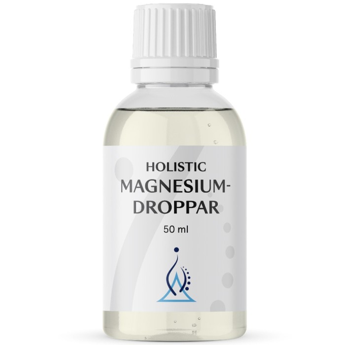 Holistic Magnesiumdroppar innehåller magnesium och mer än 70 spårämnen i jonform från naturligt mineralrikt vatten (Great Salt Lake) som koncentrerats genom avdunstning. Magnesium bidrar till minskad trötthet, normal muskelfunktion och elektrolytbalans. Tänk på vikten av en mångsidig och balanserad kost och en hälsosam livsstil.