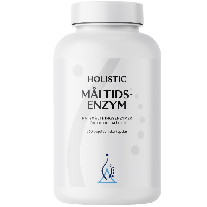 Holistic Måltidsenzym är ett kosttillskott som innehåller vegetabiliska matsmältningsenzymer. Tas i samband med måltider.