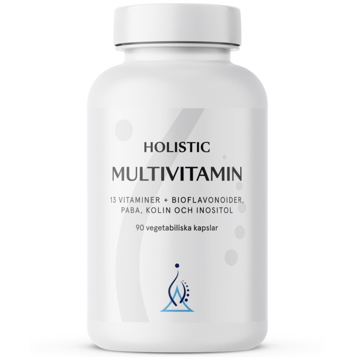 Holistic MultiVitamin Metylerad är ett multivitaminkosttillskott berikat med kolin, citrusbioflavonoider och utvalda former av vitamin B2, B6, B12 och folat.