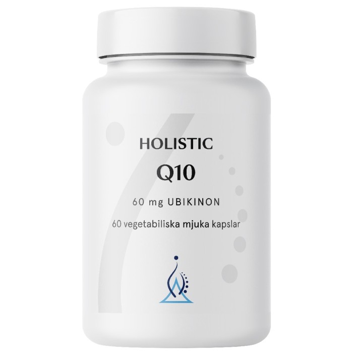 Holistic Q10 är ett kosttillskott med 60 mg fermenterad Q10 från varumärket Kaneka Q10®. Q10 finns naturligt i kroppen och hjälper till att bilda energi i mitokondrierna, cellernas kraftverk. Q10 finns i framför allt i de organ som förbrukar mycket energi, som hjärtat, men nivåerna i kroppen sjunker med åldern.
