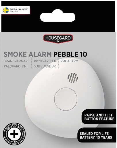 Housegard Brandvarnare Pebble 10 har en användarvänlig design och är enkel att pausa, testa och underhålla. Brandvarnaren kommer med ett förseglat litiumbatteri som varar under brandvarnarens 10-åriga livslängd.
