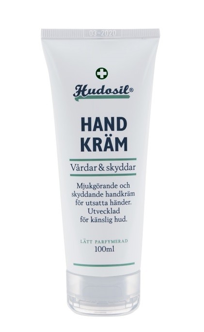 Hudosil Handkräm är en vårdande och skyddande handkräm med en mild doft. Handkrämen innehåller väl utprövade och dokumenterade råvaror i en sammansättning som gör att krämen ger en skön och behaglig känsla. Ger också huden ett skydd mot vatten och smuts. Hudosils handkräm är utvecklad i samråd med toxikologer för att få en så låg allergirisk som möjligt.
