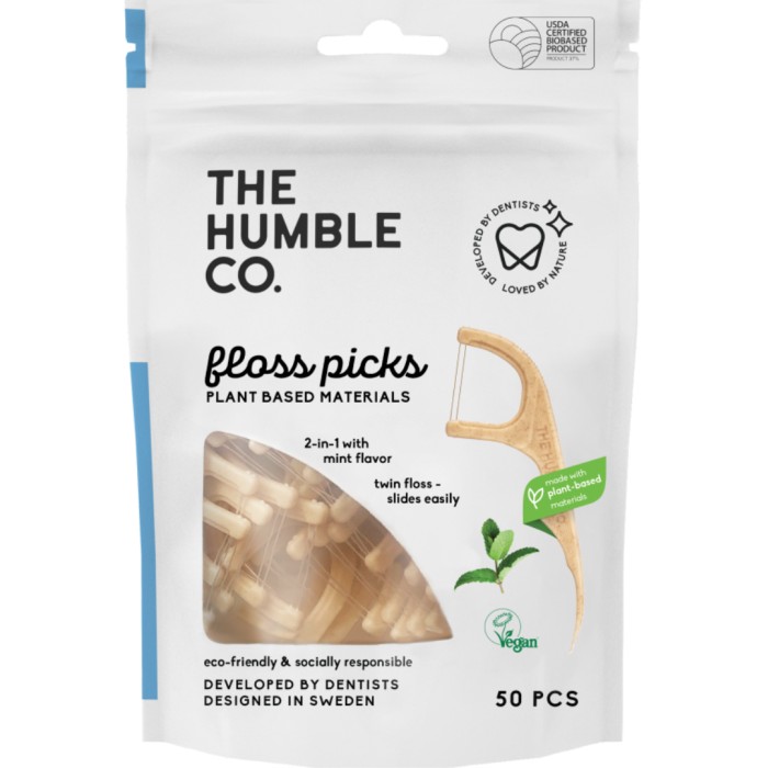 Humble Floss Picks är tandtrådsbyglar med mintsmak som hjälper dig att hålla rent mellan tänderna. Humble Floss Picks är ingen engångsprodukt utan kan efter användning sköljas av under rinnande varmt vatten och återanvändas om igen - så länge tråden håller.