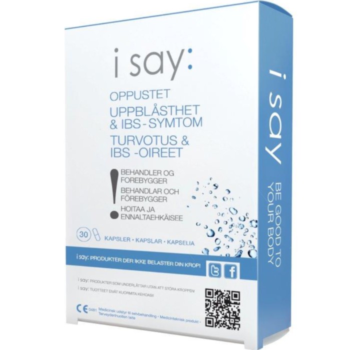 I Say: Uppblåsthet och IBS-symtom 30 kapslar
