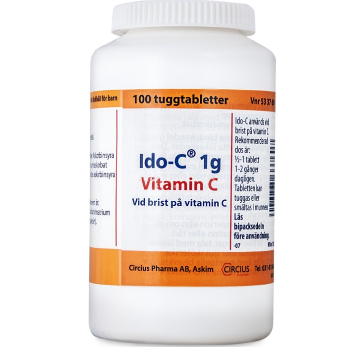 Ido-C är en tuggtablett som innehåller vitamin C (askorbinsyra). Vitamin C är bl a betydelsefull för viktiga funktioner i kroppens ämnesomsättning samt för upptag av järn från födan. Vitamin C har förmåga att fånga in fria radikaler, som kan förorsaka skador i kroppens celler. Ido-C används vid brist på vitamin C. Bristtillstånd kan t ex uppkomma vid försämrat upptag av näringsämnen i tunntarmen.