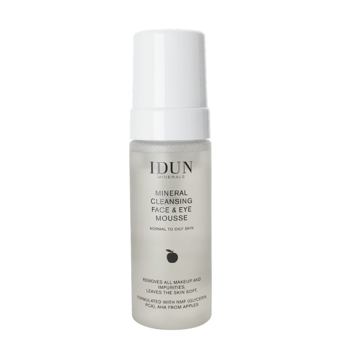 IDUNs Cleansing Mousse innehåller milda rengörande ämnen och hudens egna återfuktare glycerin. Rengöringsmoussen är förstärkt med återfuktande och rengörande äppelsyra och mineraler.