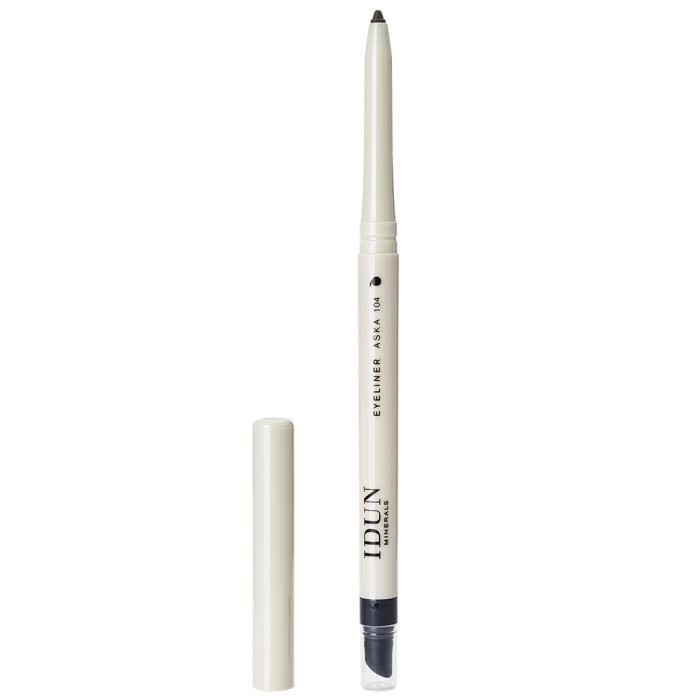 IDUN Minerals Eyeliner Aska är en kajal med en grå nyans som ger ögat en mjukare inramning än klassisk svart kajal. IDUNs eyeliner är mjuk och smidig att applicera. Är utvecklad för att passa även känsliga ögon och kontaktlinsbärare. Ger fin färg och ramar in ögonen. Eyelinern har en vässare och sudd för både skarp och tonad applicering.
