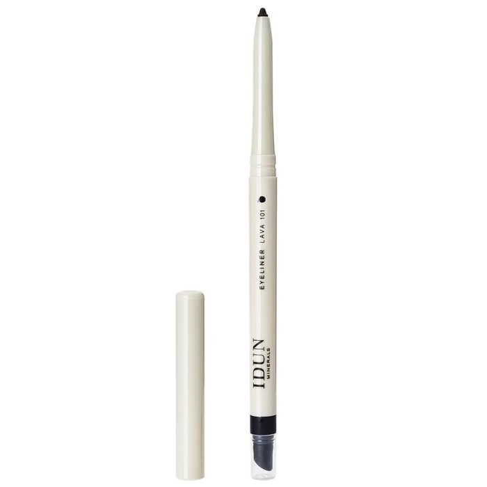 IDUN Minerals Eyeliner är gjord av rena mineraler och du applicerar dem enkelt och utan att kladda. IDUNs kajalpennor har en inbyggd sudd som hjälper dig att sota och sudda ut linjer samt en vässare som ger en skarp spets för en fin linje.