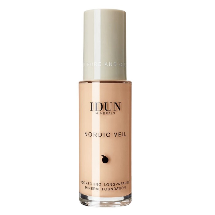 Nordic Veil Foundation från IDUN Minerals är en heltäckande foundation med långvarig effekt. IDUN:s Nordic Veil bygger på en formula som är berikad med mineraler för att skydda huden samtidigt som den gör huden len.