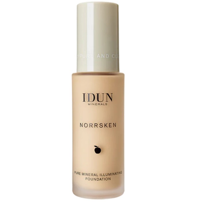 IDUN Norrsken och IDUN Nordic Veil finns i samma nyanser. Välj Norrsken om du vill ha en foundation med lättare täckning och mycket lyster; välj Nordic Veil om du vill ha en mer täckande foundation.