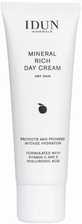 Mineral Rich Day Cream från IDUN Minerals är en extra återfuktande dagkräm för torr hud. Ansiktskrämen innehåller hyaluronsyra för att motverka torrhet och fina linjer i huden. Den är även berikad med vitaminer, mineraler och oljor för att skydda och vårda huden.