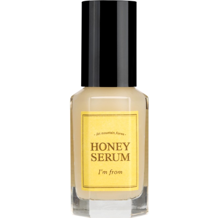I´m From Honey Serum innehåller 30,63 % Honey Glow Queen (Honey Complex), som är en unik blandning av 7 aktiva ingredienser: honung, svart bipropolis, royal gelé, bigift, gurkmeja, bipollen och kanel. Dessa ingredienser verkar djupt återfuktande och jobbar även mot fina linjer. Detta är ett mycket näringsrikt serum som bidrar till att förbättra elasticiteten i huden och har en uppljusande effekt. Den honungsliknande konsistensen sjunker lätt och smidigt in i huden och lämnar en mjuk, slät finish och ger huden ett naturligt glow.