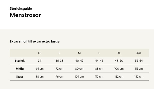 Skölj trosorna i kallt vatten efter användning. Tvätta i 60 grader tillsammans med din övriga tvätt, undvik sköljmedel. Låt trosorna hängtorka.