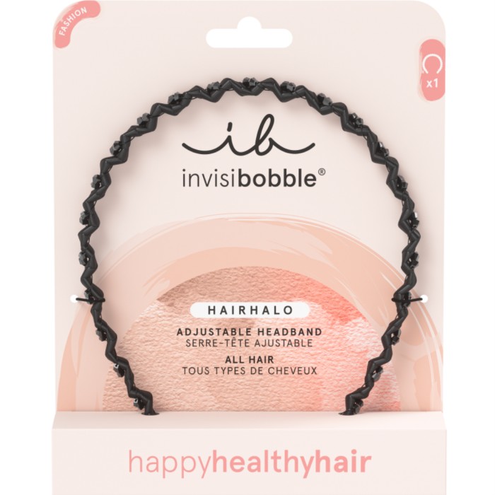Invisibobble Hairhalo True Dark Sparkle är ett hårband/diadem med spiraldesign. Designen gör att håret hålls på plats jämnt längs bandet.