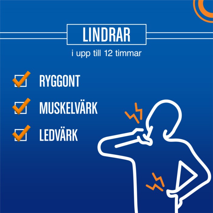 Ipaflex kan användas till vuxna och ungdomar från 12 år vid tillfälliga, lätta till måttliga smärttillstånd t.ex. huvudvärk, tandvärk, muskel- och ledvärk, ryggbesvär och menstruationssmärtor. Ger lindring i upp till 12 timmar.