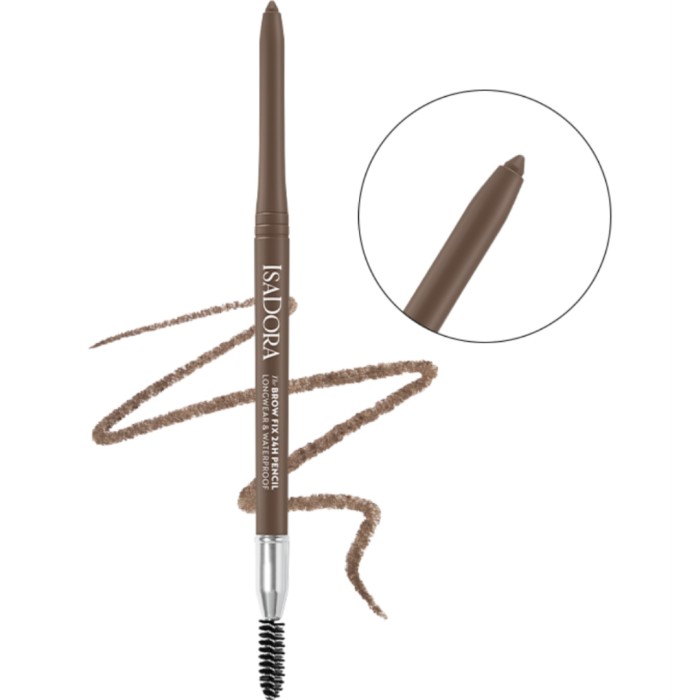 IsaDora The Brow Fix 24h Pencil är en vattenfast och kladdfri ögonbrynspenna som fyller och formar brynen, och som håller i upp till 24 timmar. The Brow Fix Longwear & Waterproof har en uppskruvbar penna för att ge en snabb och exakt ifyllning, och en mjuk borste med mikrostrån för att enkelt blenda och forma dina ögonbryn.