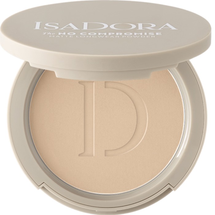The No Compromise Matte Longwear Powder från IsaDora är ett pressat puder med medium till full, matt täckning som sitter länge. No Compromise Powder är den nya generationens pressade puder och ger en matt finish med krämig textur. Den är vattenfast och sitter kvar länge med en soft-focus effekt som kontrollerar glansiga partier. Den innovativa tekniken i formuleringen gör att huden känns mjuk och återfuktad. Ett puder framtaget för att ge en perfekt matt look hela dagen, samtidigt som huden känns behaglig.