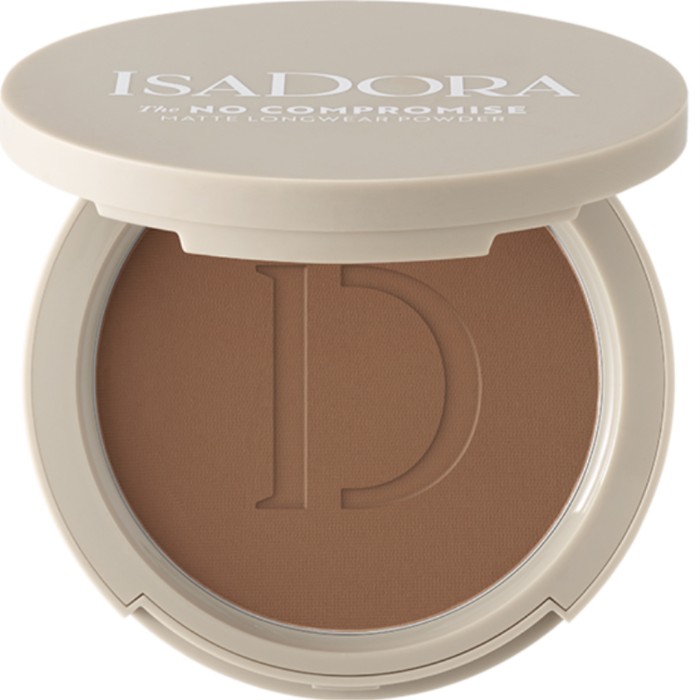 The No Compromise Matte Longwear Powder från IsaDora är ett pressat puder med medium till full, matt täckning som sitter länge. No Compromise Powder är den nya generationens pressade puder och ger en matt finish med krämig textur. Den är vattenfast och sitter kvar länge med en soft-focus effekt som kontrollerar glansiga partier. Den innovativa tekniken i formuleringen gör att huden känns mjuk och återfuktad. Ett puder framtaget för att ge en perfekt matt look hela dagen, samtidigt som huden känns behaglig.