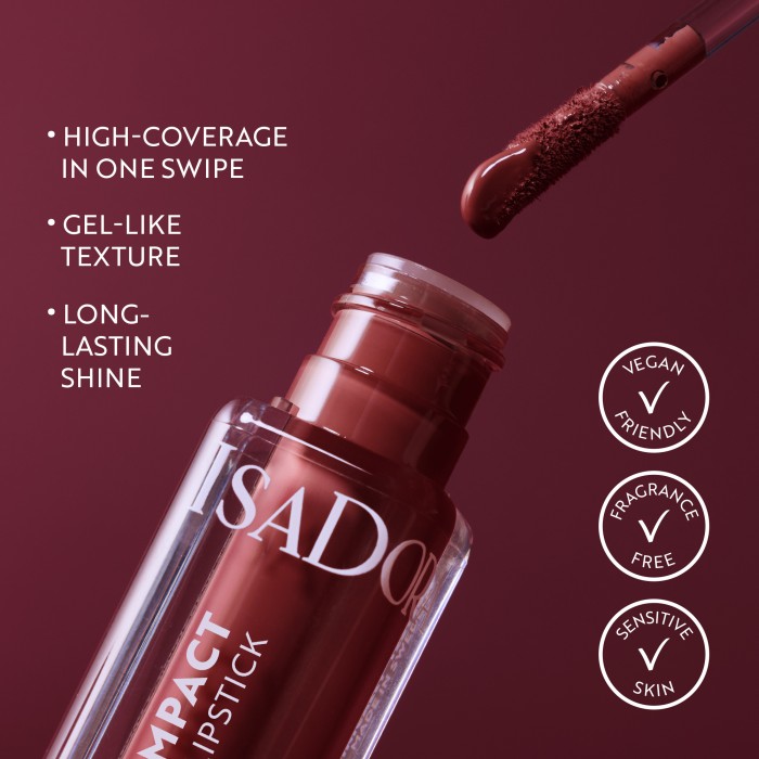 The True Impact Vinyl Liquid Lipstick från IsaDora är ett högpigmenterat flytande läppstift med en gelliknande formulering som ger läpparna intensiv färg och en glansig finish. Med True Impact Vinyl Lipstick får du en intensiv täckande färg med bara ett drag. Det flytande läppstiftet har en lättviktig och gelaktig konsistens och ger en långvarig vinylglans. Bekvämt att använda och är klibbfritt. Veganskt.