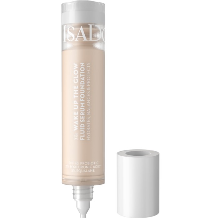Wake Up the Glow Fluid Serum Foundation från IsaDora är en flytande serum-foundation med vårdande ingredienser som ger huden en återfuktad och daggfrisk finish. IsaDoras vårdande hybrid kombinerar element från makeup och hudvård för att förenkla skönhetsrutinen. Den viktlösa formuleringen nästan smälter in i huden och ger en jämn hudton, samtidigt som den vårdar och vitaliserar huden. Med SPF30 som ger ett skydd till huden, 2% hyaluronsyra och 5% vegetabilisk squalane som hjälper till att återfukta huden och Lactobacillus (probiotika) som bidrar till att balansera hudens mikrobiom. En foundation som gör att huden omedelbart ser återfuktad och fräsch ut.