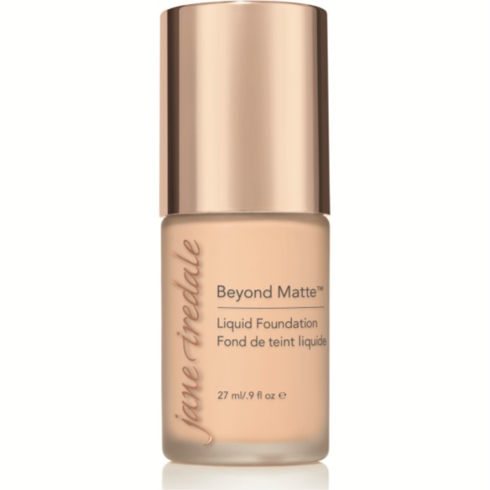 Beyond Matte Liquid Foundation från Jane Iredale är en sammetslen foundation som anpassar sig efter användarens egen hudton. Enkel att bygga upp till önskad täckningsgrad. Beyond Matte Foundation innehåller peptider från selleri och linfrön som tillsammans verkar för att motverka synliga porer, ge huden ett jämnare utseende och motverka glansighet. Innehåller jojobafröolja som mjukgör huden. Beyond Matte Liquid Foundation ger en semi-matt finish.