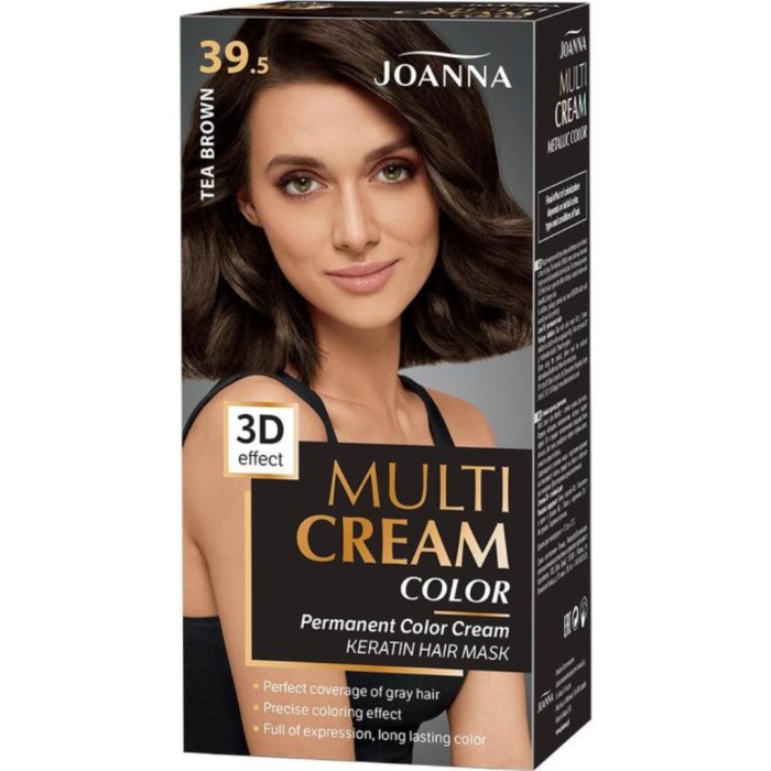 Joanna Multi Cream Color är en permanent hårfärg som täcker grått hår. 3D-effekt som ger ett intryck av djup. Ger naturlig volym och en vacker och fyllig färg. Med UV-filter som förhindrar färgblekning av solen. PPD-fri (dvs innehåller ej Para-phenylenediamin). En keratin-hårmask medföljer i förpackningen.