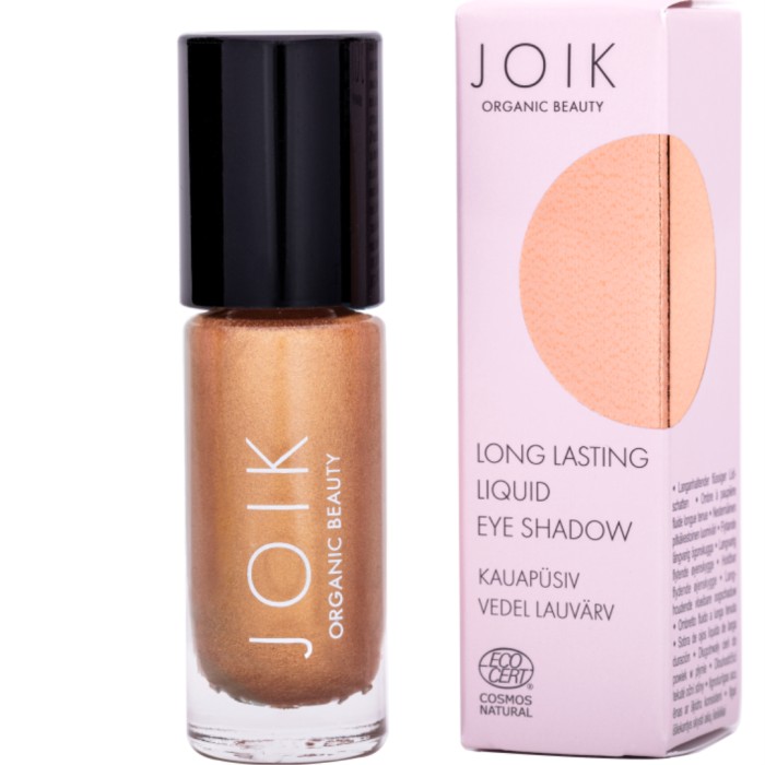 JOIK Organic Long Lasting Liquid Eye Shadow är en vattenbaserad, flytande ögonskugga full med pigment. En ögonskugga som är lätt att använda och håller hela dagen. JOIK Long Lasting Eye Shadow flytande ögonskugga innehåller olivsqualane och röd solhatts-extrakt som hjälper till att förhindra för tidigt åldrande av huden. Ögonskuggan är certifierad enligt COSMOS Natural, och är en naturlig ögonskugga som passar även känsliga ögon och dig som bär kontaktlinser. Ögonskuggan är vegansk.