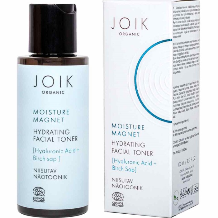 JOIK Organic Moisture Magnet Hydrating Facial Toner är ett ansiktsvatten som lugnar huden och ger långvarig fukt. Moisture Magnet återfuktande ansiktstvatten innehåller hyaluronsyra och björksav, rödalgextrakt, hudliknande aminosyror och kolhydratkomplex som lugnar och återfuktar huden effektivt, samtidigt som det hjälper huden att behålla fukten längre. JOIKs ansiktsvatten bibehåller hudens elasticitet och gör att huden ser fylligare ut.