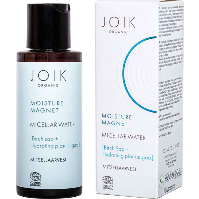 JOIK Organic Moisture Magnet Micellar Water är ett återfuktande och mjukgörande micellärvatten för daglig användning Joik micellärvatten rengör huden skonsamt och gör att huden känns mjuk och återfuktad. Micellarvattnets rengörande ingredienser tar försiktigt bort smink och orenheter som samlats under dagen.