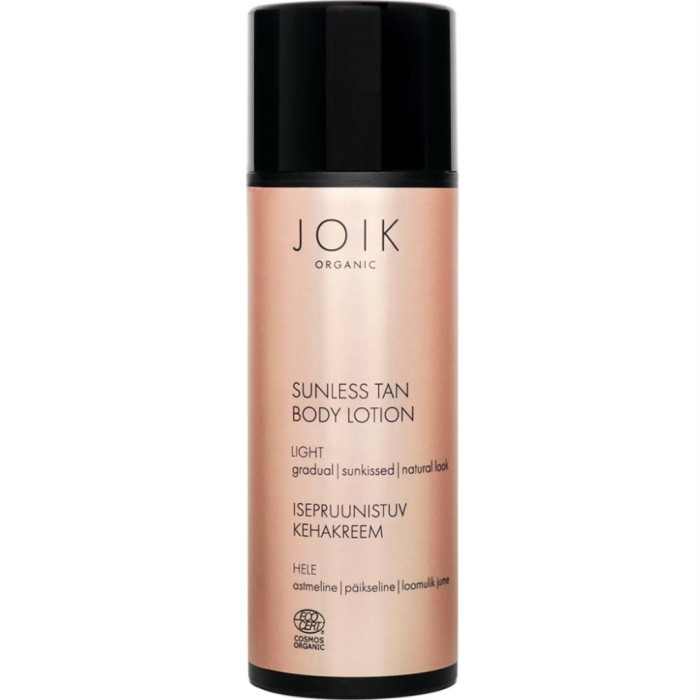 JOIK Organic Sunless Tan Body Lotion Light är en brun utan sol-kroppslotion som absorberas snabbt och gradvis ger huden en solkysst färg. Denna brun utan sol-lotion för kroppen absorberas snabbt och återfuktar huden, utan att kännas kladdig. Ger huden gradvis en solkysst färg. Brun utan sol-effekten kommer från naturliga röda bär och sockerrör. Lotionen innehåller ekologisk aloe vera som återfuktar och lugnar huden.