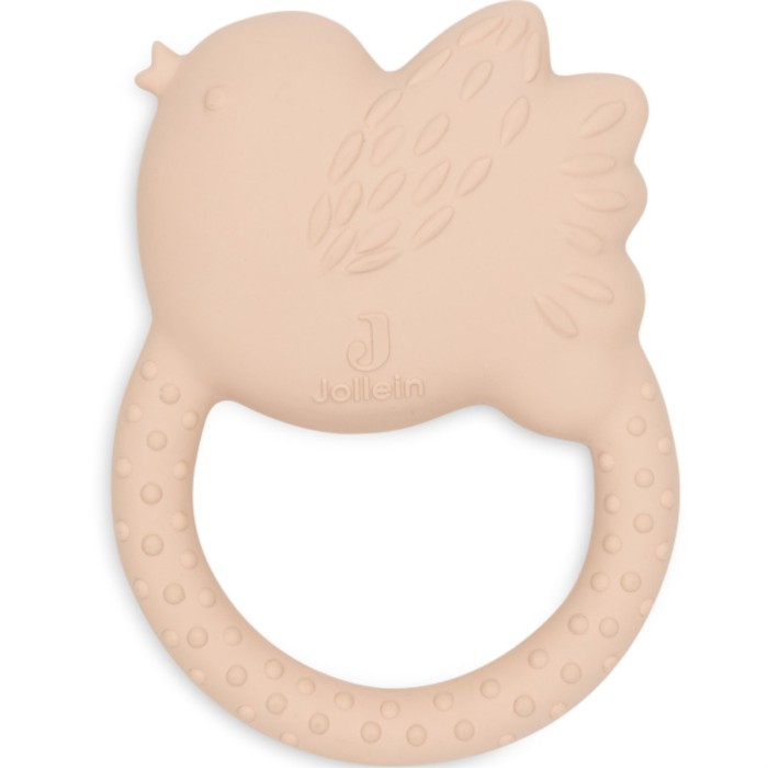 Jolleins bitleksak i gummi kan lugna barnet vid tandsprickningen, när barnets tandkött är irriterat. Bitleksaken är lätt för babyn att greppa och leka med, och den har en struktur som gör den intressant för barnet att utforska. Denna söta bitring med en fågel heter Lovely Birds.