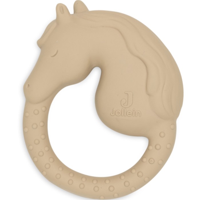 Jolleins bitleksak i gummi kan lugna barnet vid tandsprickningen, när barnets tandkött är irriterat. Bitleksaken är lätt för babyn att greppa och leka med, och den har en struktur som gör den intressant för barnet att utforska. Denna söta bitring med en häst heter Nostalgic Ride.