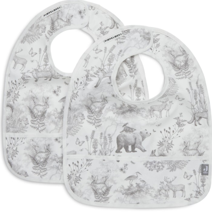 Jolleins vattentäta haklapp med motivet Forest Animals i 2-pack. Haklappen har en mjuk och följsam, vattentät kvalitet och en ficka längst ned som fångar upp spill. Haklappen försluts i nacken med ett justerbart kardborrband. Kan användas från det att mat introduceras tills att barnet är ca 2 år.