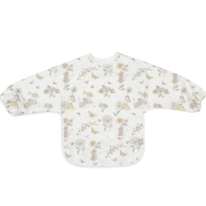 Jolleins haklapp med långa ärmar och det fina mönster Dreamy Mouse kan barnet använda från det att mat introduceras och så länge behovet av haklapp finns. Haklappen med ärmar kan användas vid matbordet, men också när det är dags att måla, knåpa och pyssla.